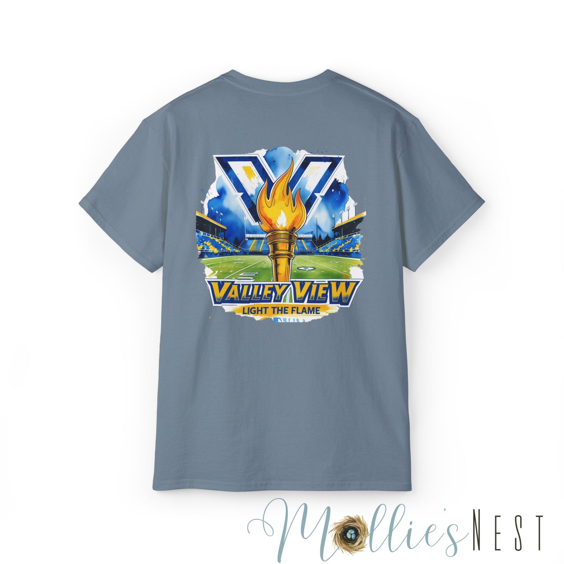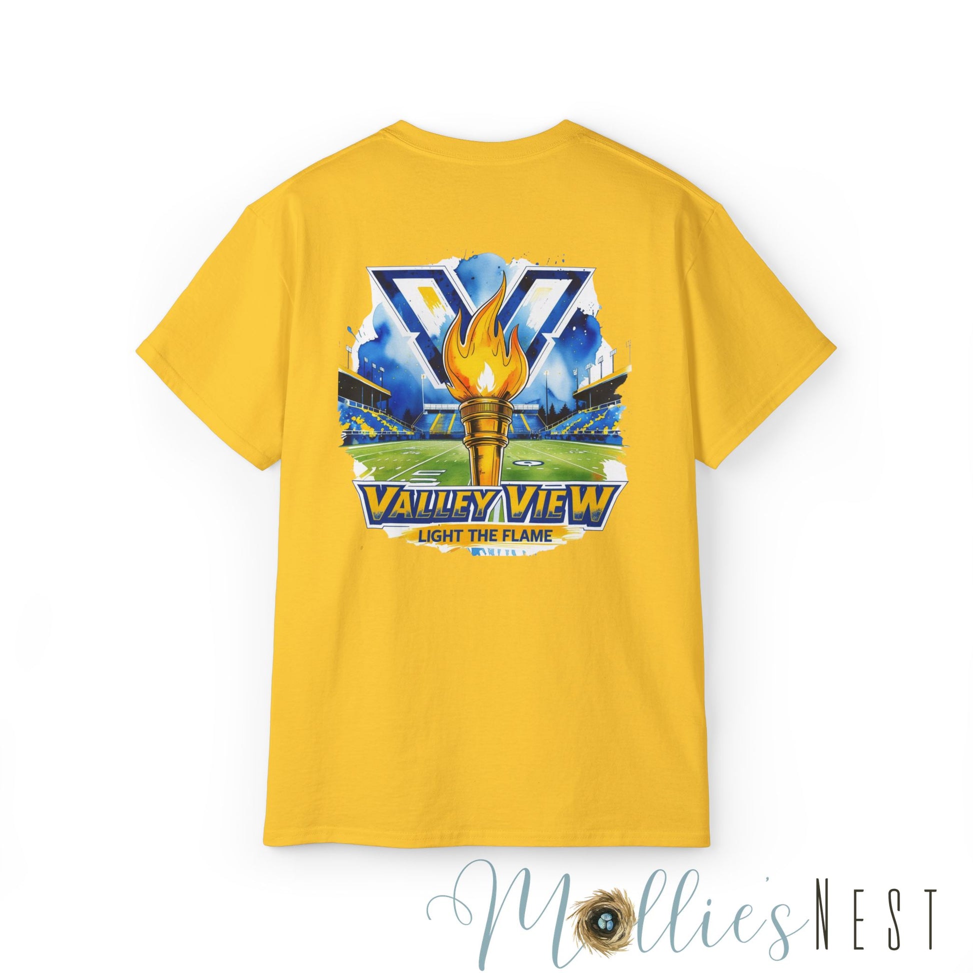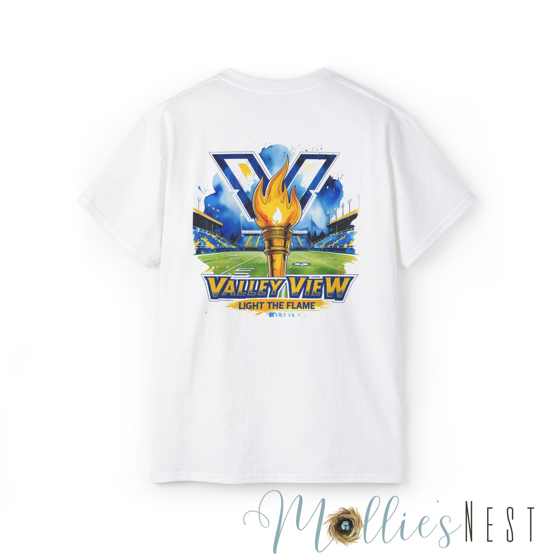 ADULT. Valley View Light the Flame Unisex Cotton Tee, Casual T-Shirt - Football - School Spirit