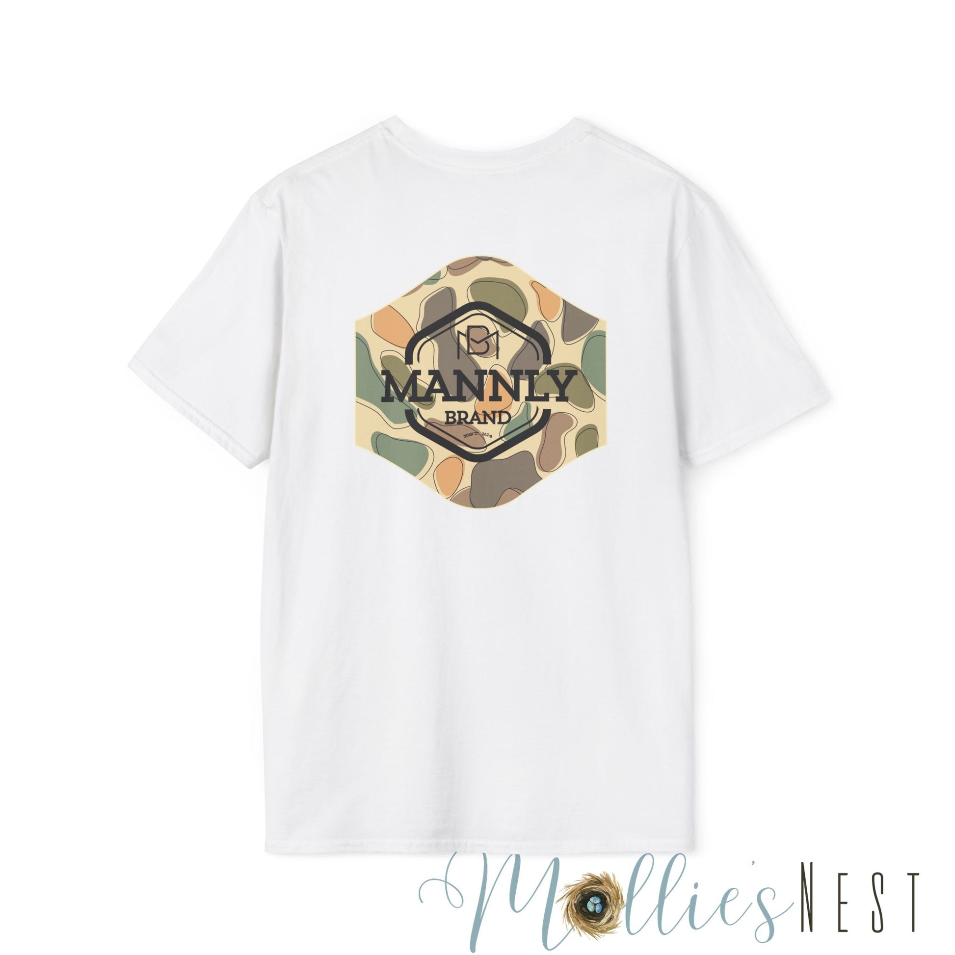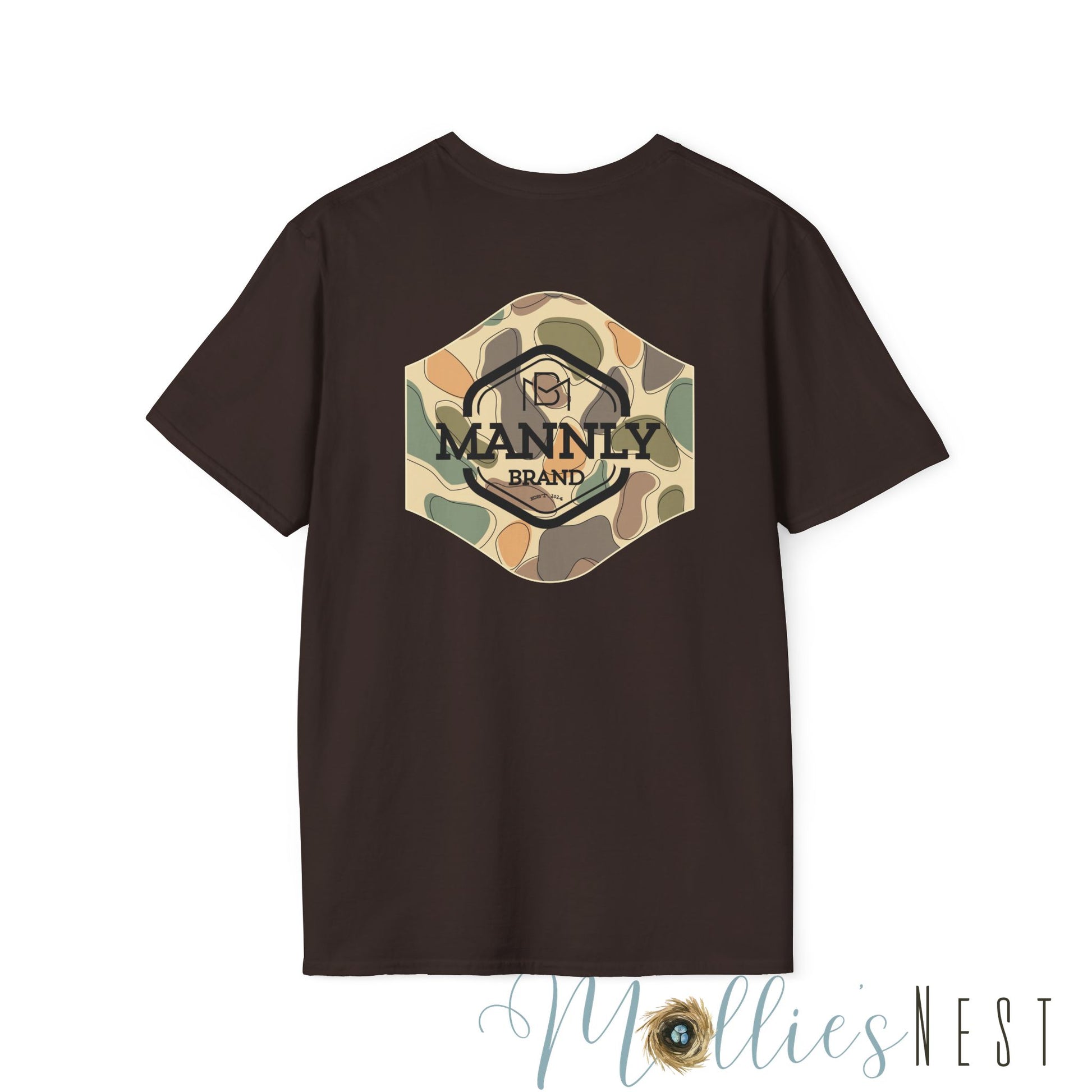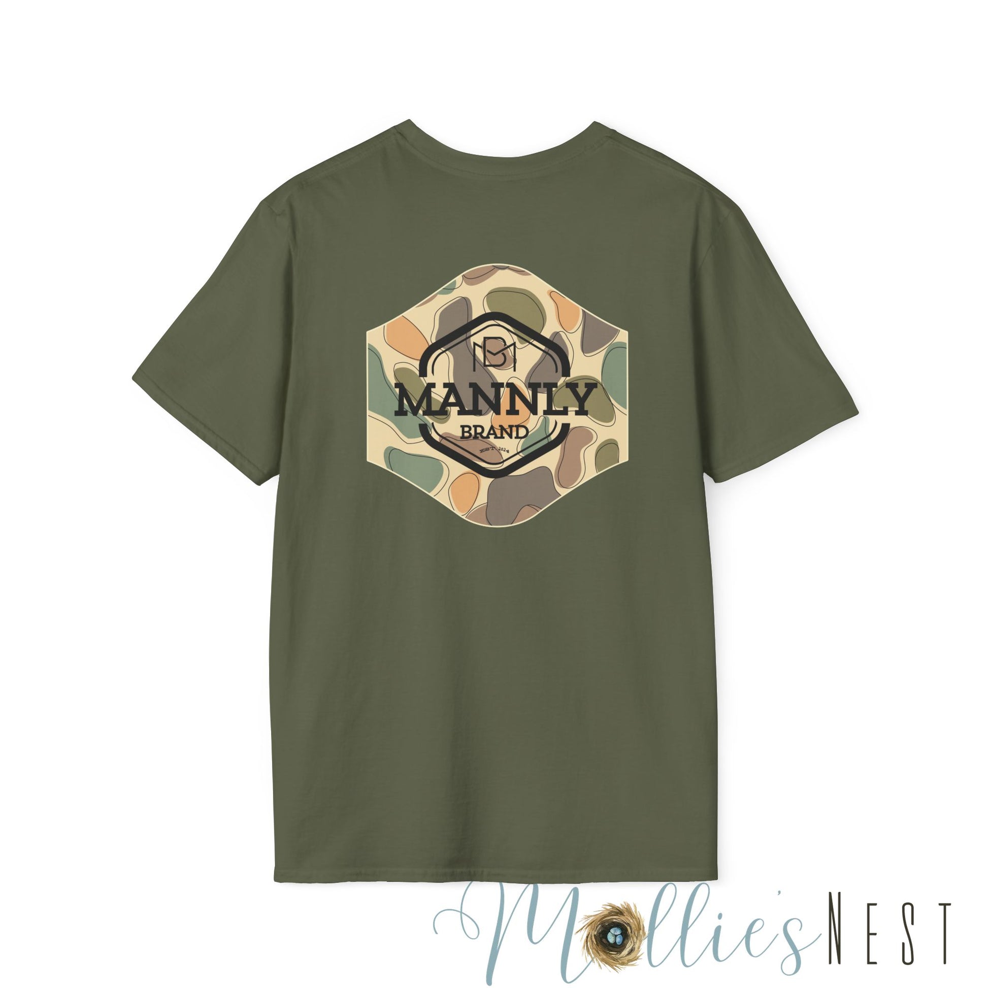 Camo Graphic Tee for the Outdoorsy Man, Unisex Softstyle T-Shirt. MANNLY BRAND