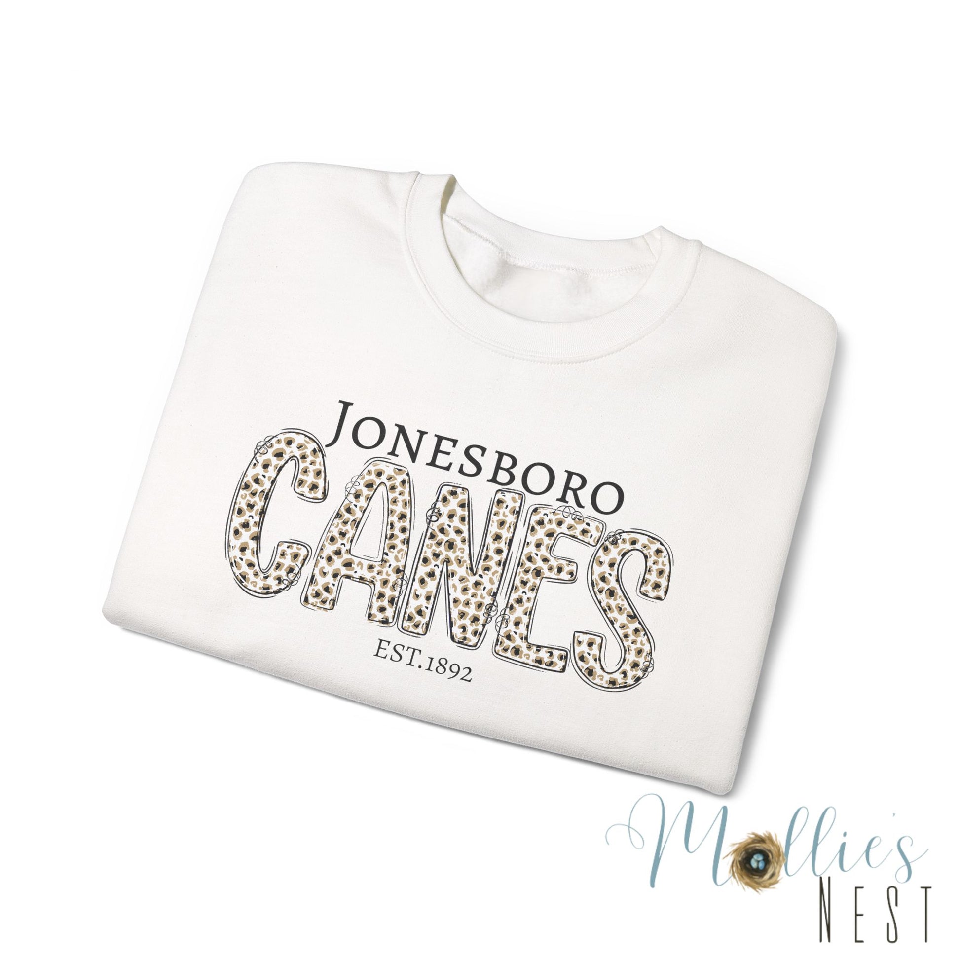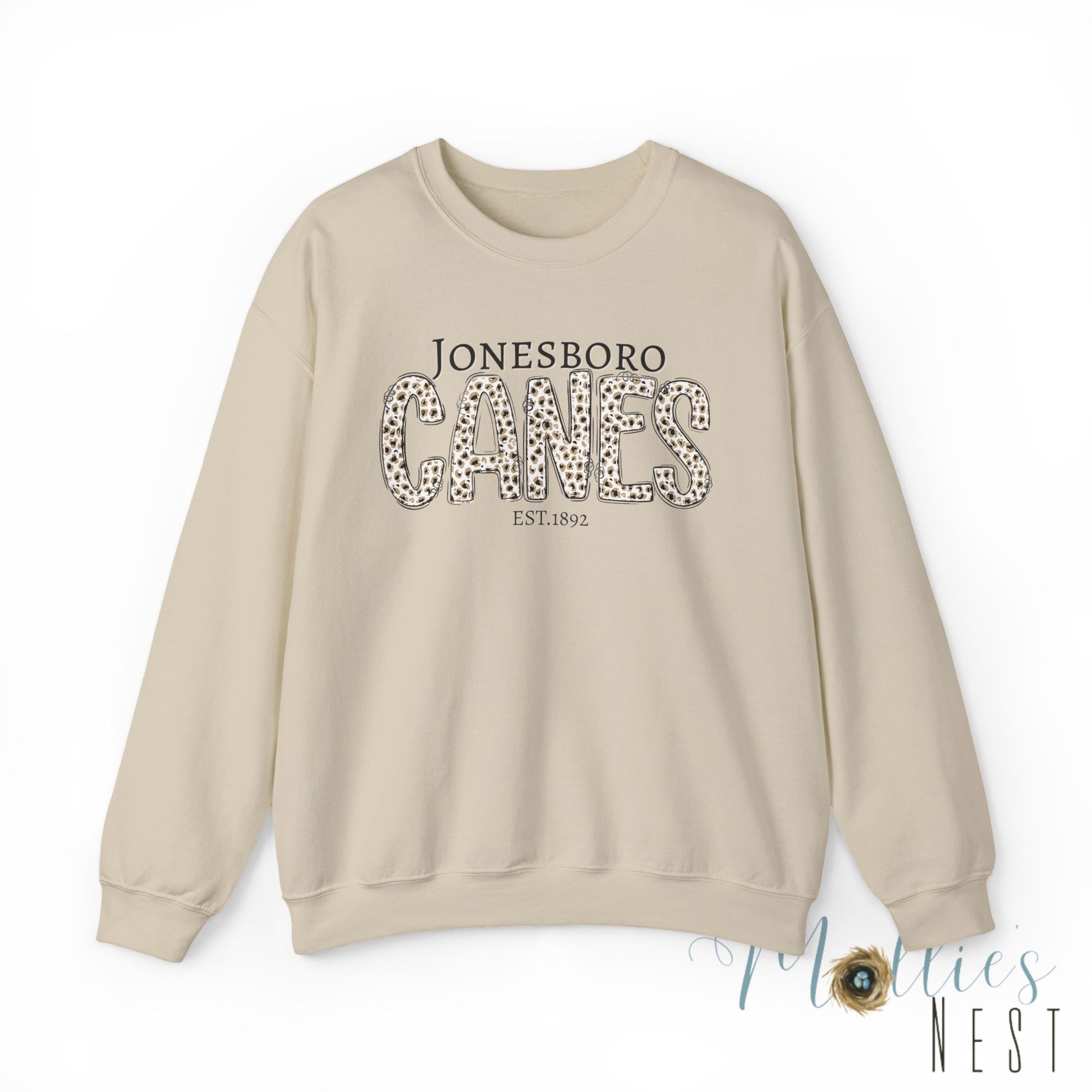 Jonesboro Canes Leopard Print Crewneck Sweatshirt. ADULT