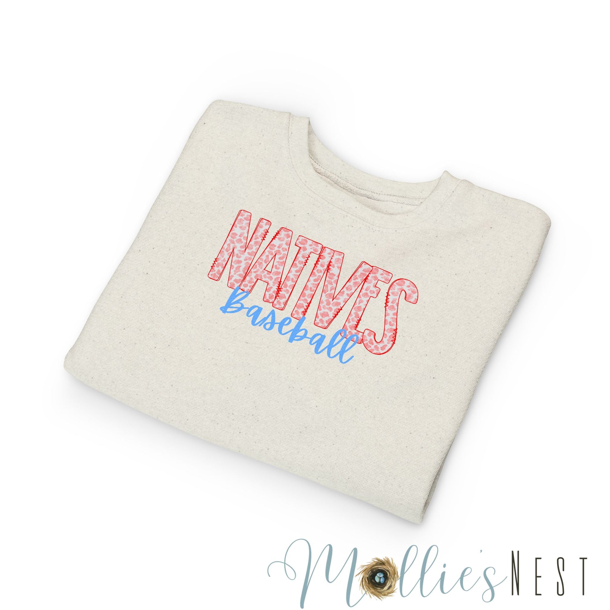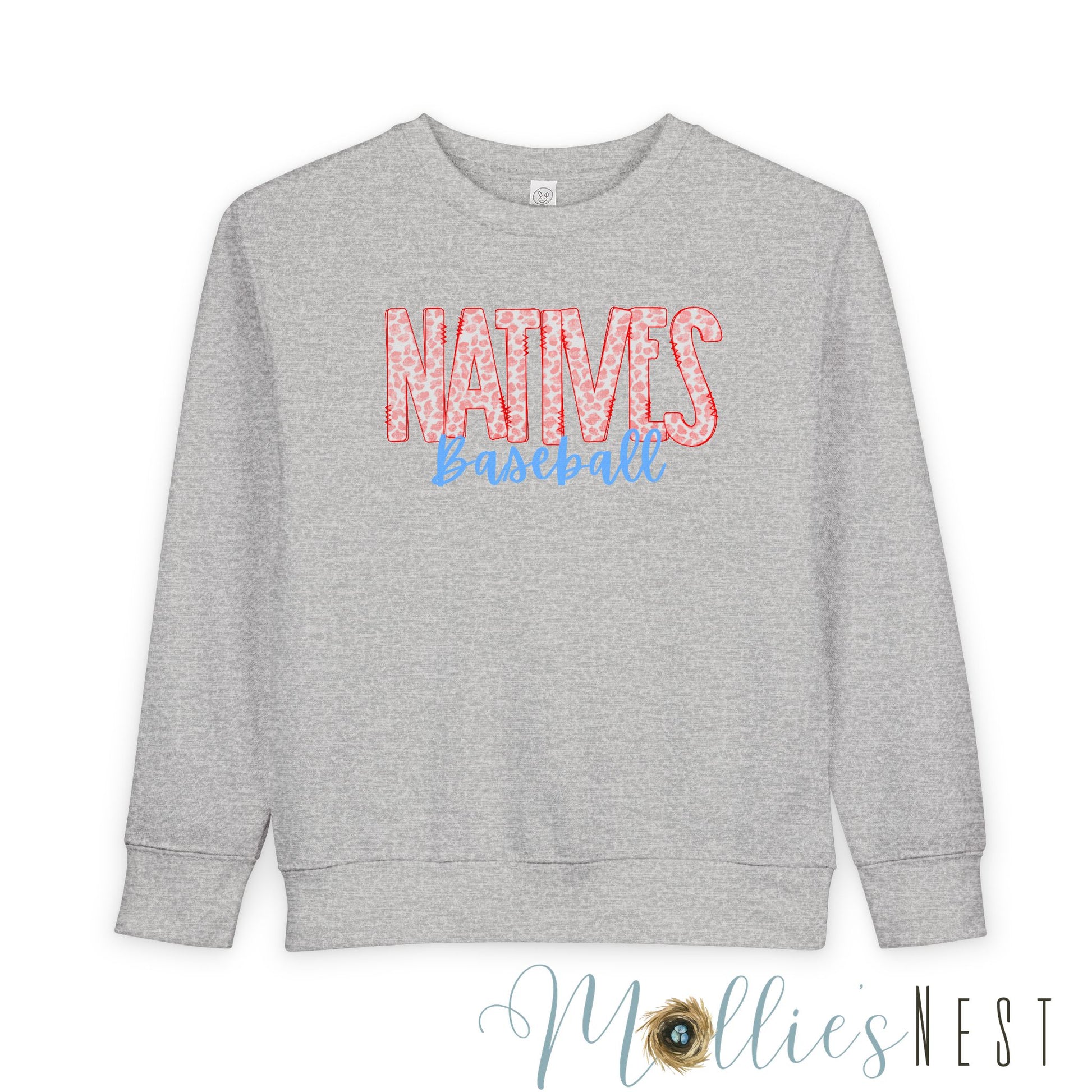 Natives Baseball Toddler Sweatshirt, Cute Kids Gift, Baseball Fan Apparel, Playful Toddler Gear, Sporty Children’s Clothing