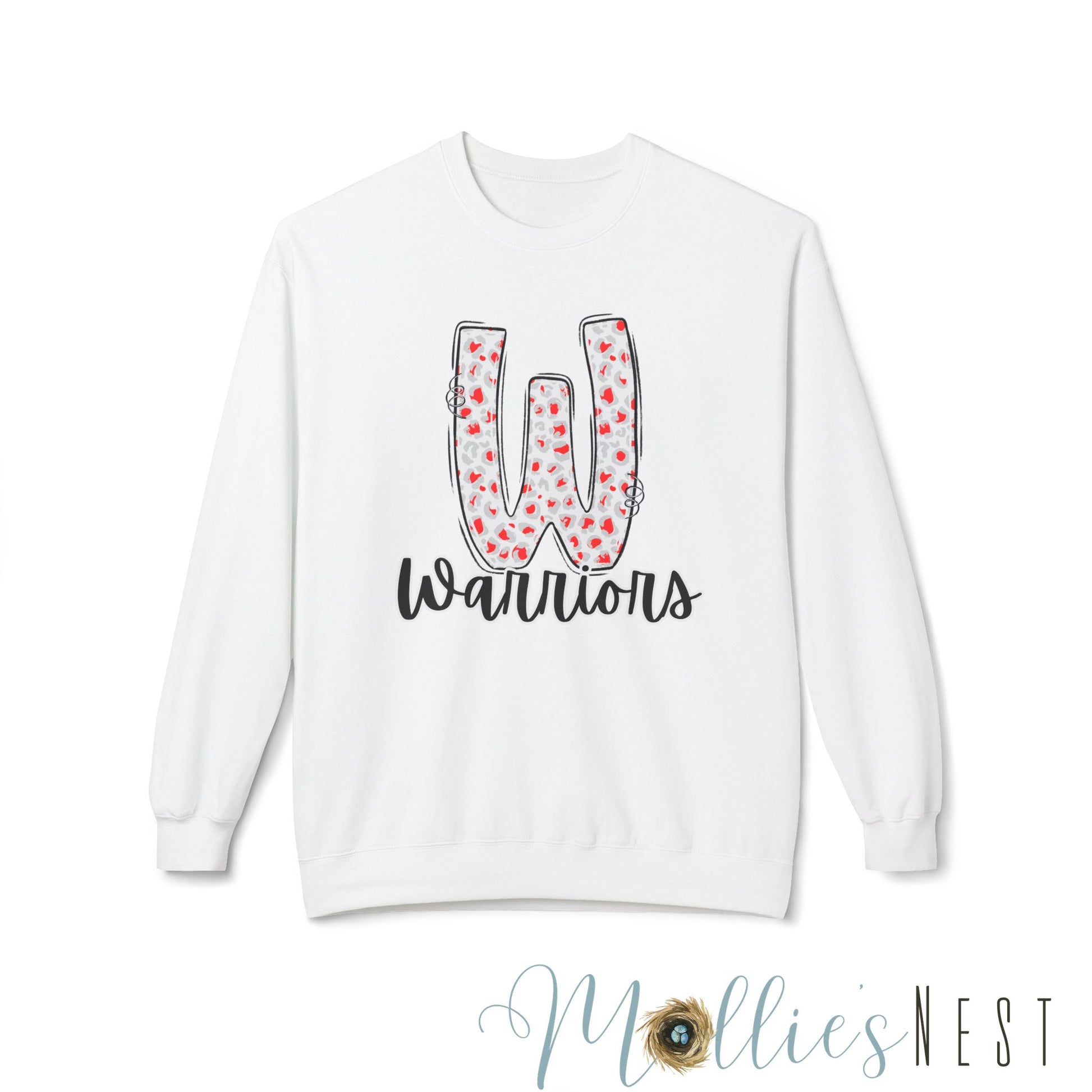 Warriors Fleece Sweatshirt - ADULT. Red/White Leopard