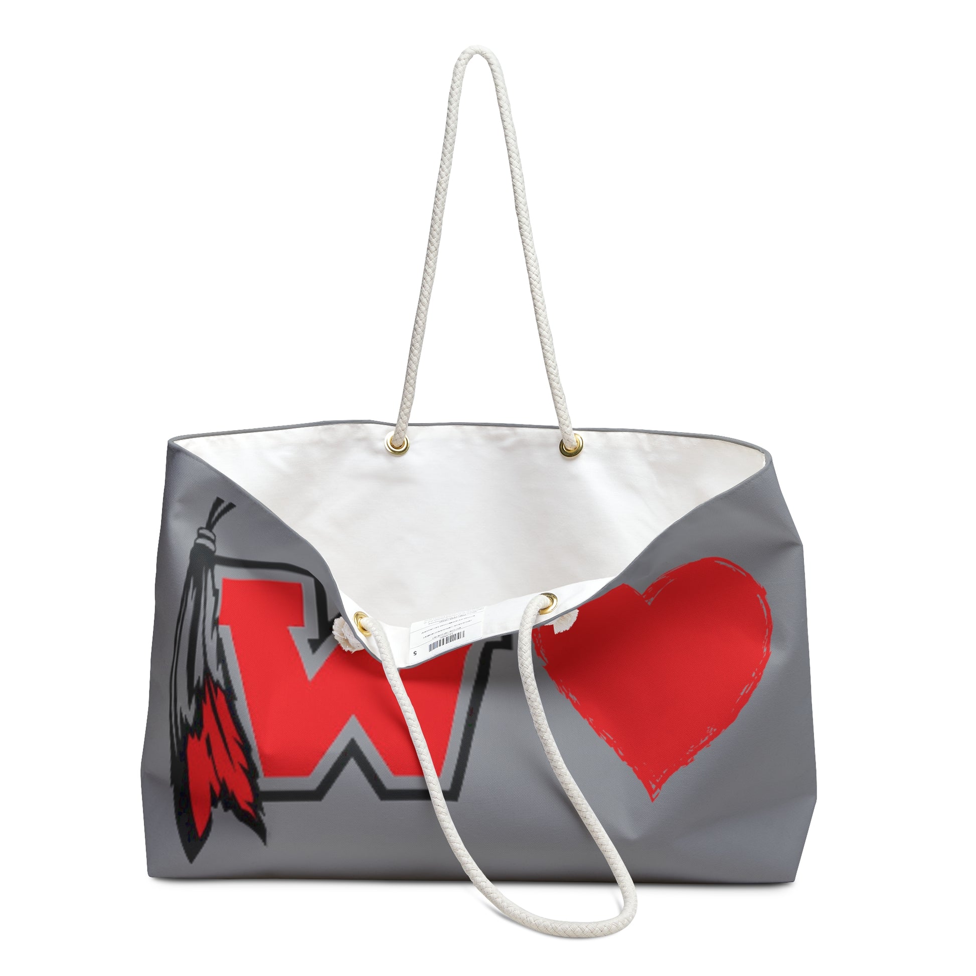 Our oversized Weekender Tote is perfect for your weekend at the beach or in town. The wide-mouthed, durable bag holds a generous amount of personal items and is easily held by its thick rope handles.